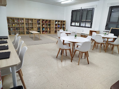 Despois informan das diferentes opcións do espazo: xogos de mesa e lóxica, tics, arte, diferentes pizarras...